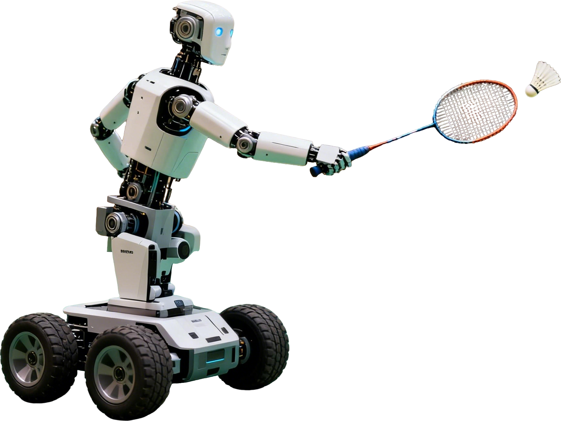 羽毛球系列机器人(左)现已迭代至第三代,能够与专业选手稳定对打。网球系列机器人(右)已能够自主识别球体,自主接球与发球。