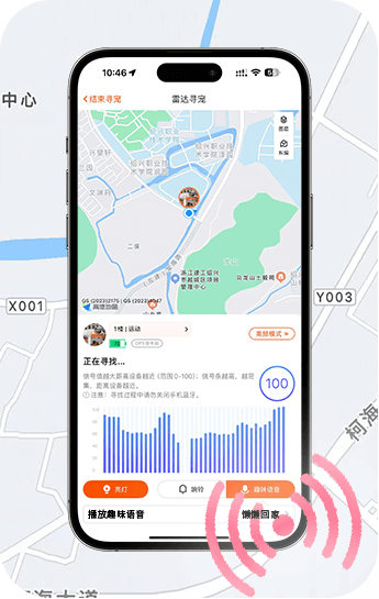 靠这个找到3回猫了,平常开标准模式就行,回来到现在就冲过两回电,先根据地图方位到附近,然后打开声音和灯光就能看见,滴滴声挺明显的,在我们小区50米左右是能分辨出来的。