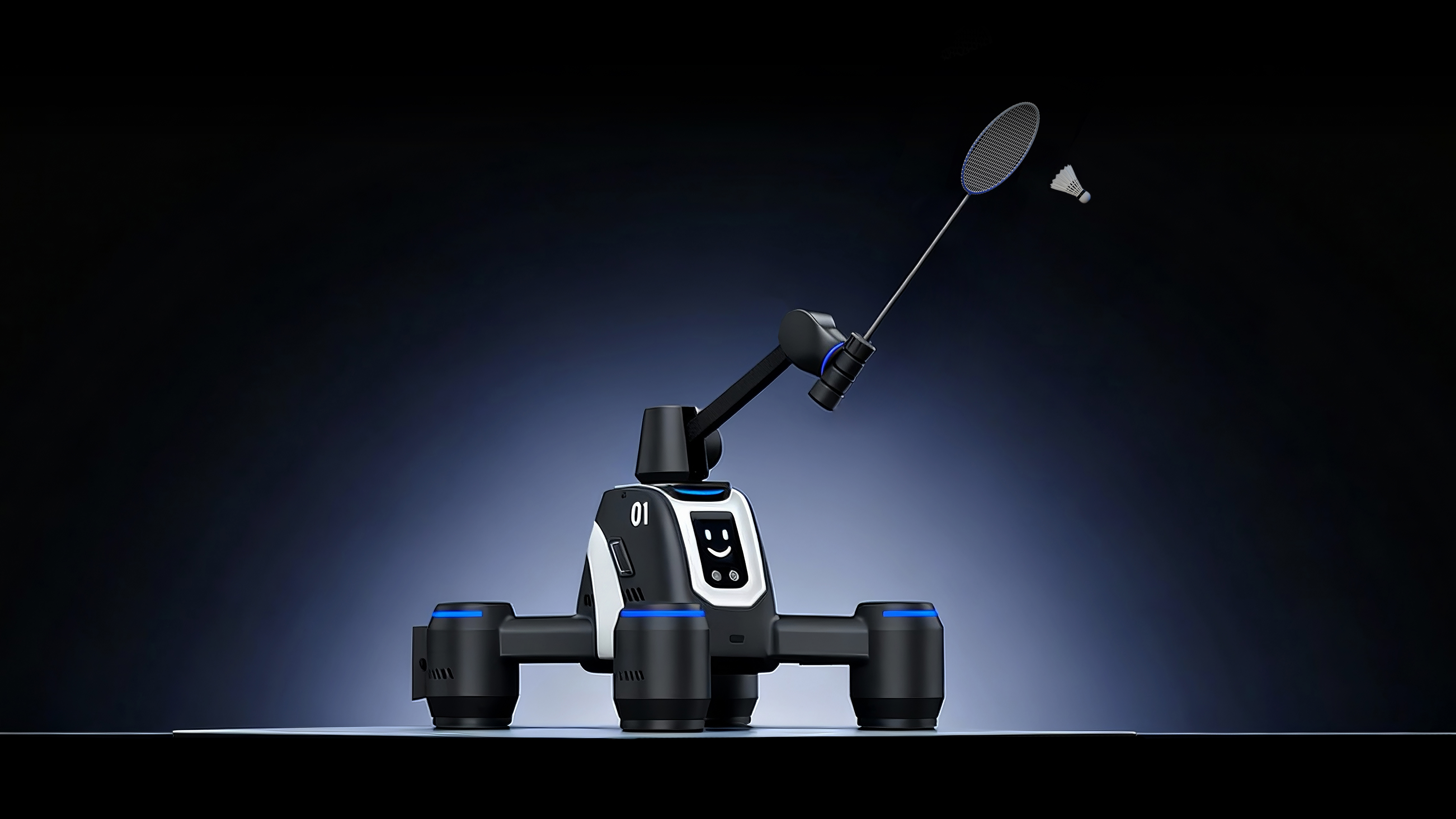 该机器人已具备与专业选手练习的能力,能够完成定点接球与回球,并熟练执行网前球、高远球、挑球等多种专业技法。